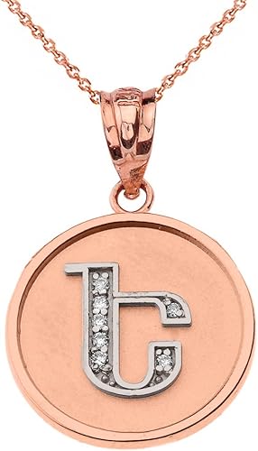 Amazon Com 14k Two Tone Rose Gold Armenian Letter E Diamond Disc Initial Pendant Necklace 16 Jewelry