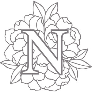 N Botanical Monogram Detailed Peony Drawing Sticker By Epine Redbubble