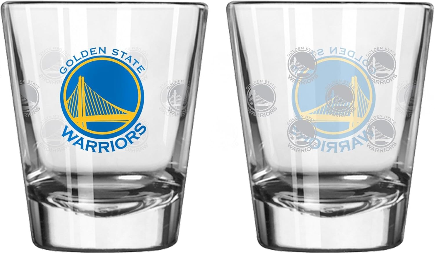Amazon Com Boelter Brands Nba Golden State Warriors Shot Glasssatin Etch Style 2 Pack Team Color One Size Sports Outdoors