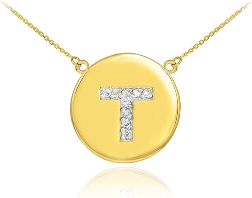 Amazon Com Fine 14k Yellow Gold Letter T Diamond Disc Initial Necklace 16 Inches Pendant Necklaces Jewelry