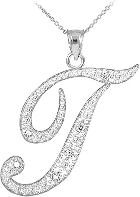Amazon Com 14k White Gold Diamond Script Initial Letter T Pendant Necklace 16 Claddagh Gold Jewelry