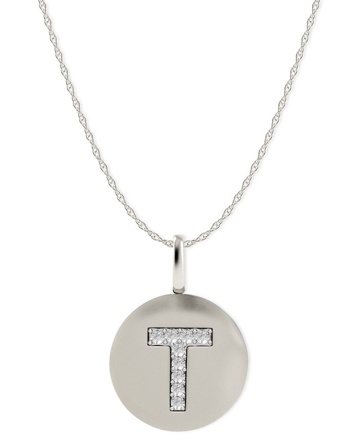 Macy S 14k White Gold Necklace Diamond Accent Letter T Disk Pendant Reviews Necklaces Jewelry Watches Macy S