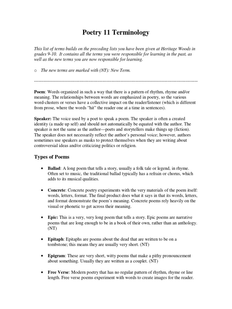 Poetry 11 Terminology Sonnets Poetry
