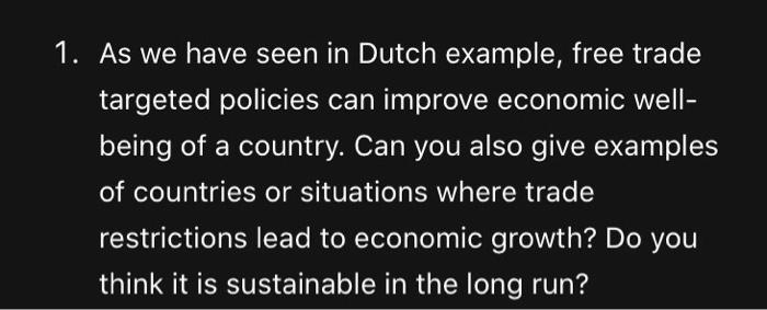 Solved 1 As We Have Seen In Dutch Example Free Trade Ta Chegg Com