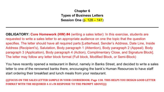 Solved Chapter 6 Types Of Business Letters Session One P Chegg Com